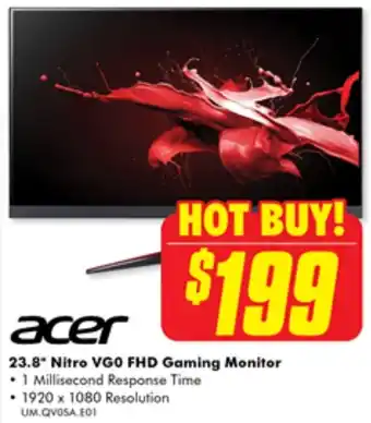 | acer 23.8* Nitro VGO FHD Gaming Monitor | The Good Guys | $199.00 | 01 February 2024 | 07 February 2024 | |||