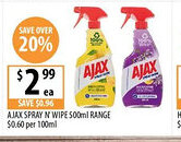 | Ajax spray n' wipe selected varieties 500mL | Supabarn | $3.95 | $2.99 | 20% off | 28 January 2026 | 03 February 2026 | |