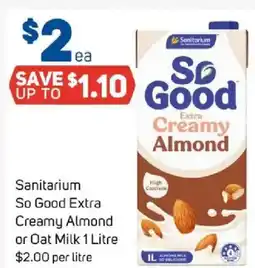 Foodland Sanitarium so good extra creamy almond or oat milk offer