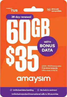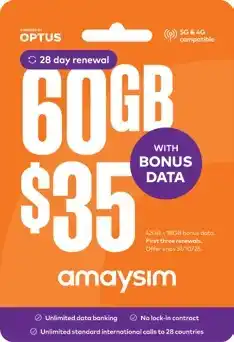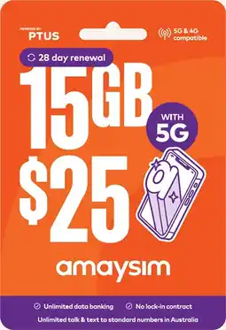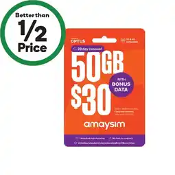![]() | amaysim $25 SIM Pack† | Woolworths | $25.00 | $10.00 | $15.00 Discount | 17 September 2025 | 23 September 2025 |