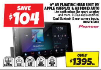 | Pioneer 9β av floating head unit w/ apple carplay & android auto | Autobarn | $1,499.00 | $1,395.00 | $104.00 Discount | 02 April 2023 | 23 April 2023 | |
