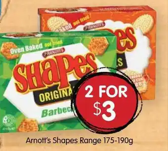 | Arnott's Shapes Range 175-190g | Spudshed | $3.00 | 2 for $3 | 18 May 2022 | 24 May 2022 | ||