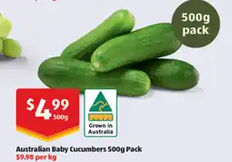 | Australian baby cucumbers 500 g | ALDI | $10.98 | 31 January 2026 | 06 February 2026 | |||