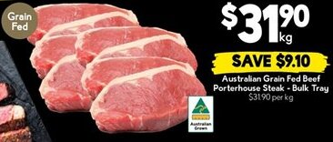 | Australian grain fed beef porterhouse steak - bulk tray | Drakes | $41.00 | $31.90 | $9.10 Discount | 14 January 2026 | 20 January 2026 | |