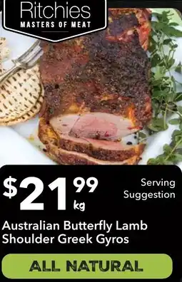| Australian butterfly lamb shoulder greek gyros | Ritchies | $21.99 | 04 February 2026 | 10 February 2026 | |||