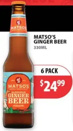 Coles Matso’s Ginger Beer Cans offerMatso’s Ginger Beer Cans 6x330mlColes$32.50$29.00$3.50 Discount18 February 202624 February 2026