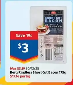 ALDI Berg bacon offerBerg bacon 200 gALDI$3.9931 December 202506 January 2026