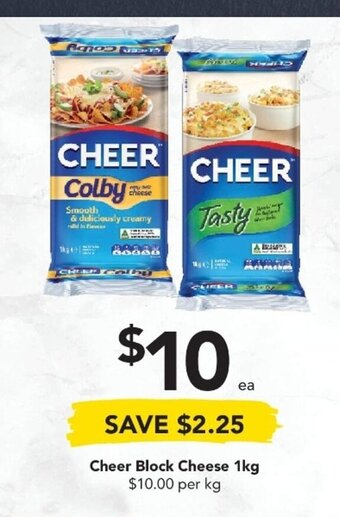 | Cheer Block Cheese 1kg | Drakes | $9.95 | 26 July 2023 | 01 August 2023 | |||