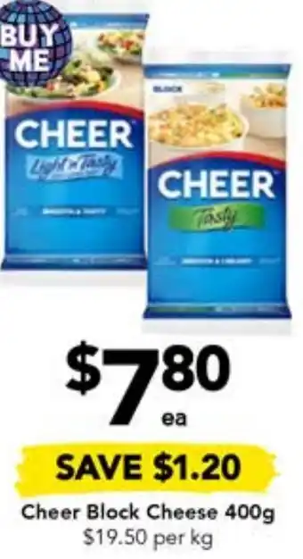 | Cheer Block Cheese 400g | Drakes | $8.00 | 17 April 2024 | 23 April 2024 | |||