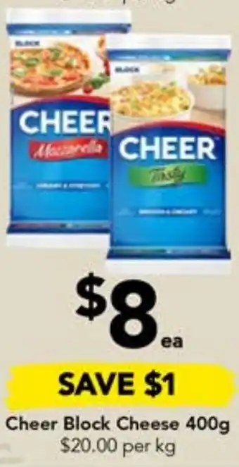 | Cheer Block Cheese 500g | Drakes | $8.00 | 28 September 2022 | 04 October 2022 | |||