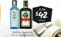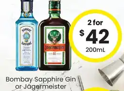 The Bottle O Bombay sapphire gin or jägermeister offer