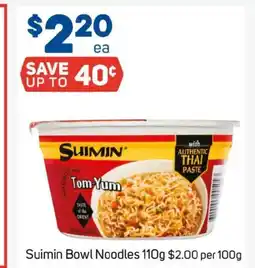 1Foodland Suimin bowl noodles offerSuimin bowl noodles 110 g Foodland$2.60$2.20SAVE 40¢14 January 202620 January 2026 View offer