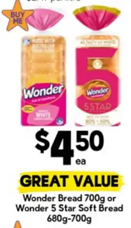 Drakes Wonder Bread Wonder 5 Star Soft Bread offerWonder Bread Wonder 5 Star Soft BreadDrakes$4.5021 January 202627 January 2026