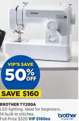 Spotlight BROTHER TY200A Sewing Machine offerBROTHER TY200A Sewing MachineSpotlight$200.0017 July 202404 August 2024