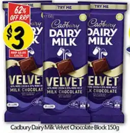 Foodworks Cadbury Milk Chocolate Block offerCadbury Milk Chocolate Block 150-190 gFoodworks$4.7030% Off08 April 202614 April 2026