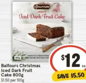 | Balfours Christmas Iced Dark Fruit Cake 800g | IGA | $12.00 | 15 November 2023 | 21 November 2023 | |||
