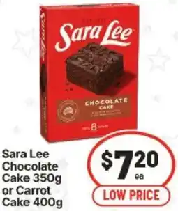 | Sara Lee Frozen Cake 350-400g | IGA | $6.80 | 07 February 2024 | 13 February 2024 | |||