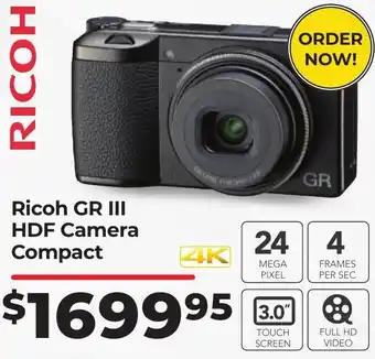 | Ricoh GR III HDF Camera Compact | Teds Cameras | $1,699.95 | 03 June 2024 | 30 June 2024 | |||