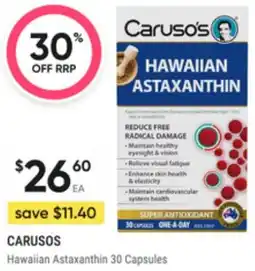 | 4 | Carusos Hawaiian Astaxanthin 30 Capsules | healthylife | $38.00 | $26.60 | $11.40 Discount | 02 February 2026 | 08 March 2026 | View offer | |