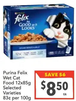 | Purina felix wet cat food selected varieties 85 g | Supa Valu | $8.25 | 15 October 2025 | 21 October 2025 | |||