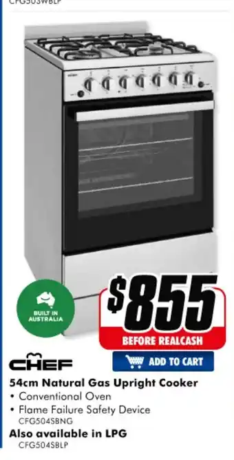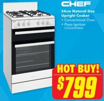 The Good Guys Chef 54cm Natural Gas Upright Cooker offerChef 54cm Natural Gas Upright CookerThe Good Guys$799.0020 October 202226 October 2022