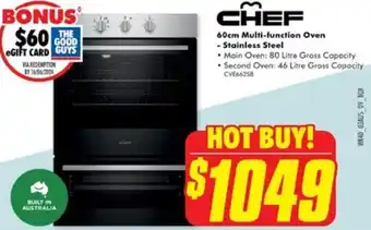 The Good Guys CHEF 60cm Multi-function Oven offerCHEF 60cm Multi-function OvenThe Good Guys$1,049.0002 April 202417 April 2024