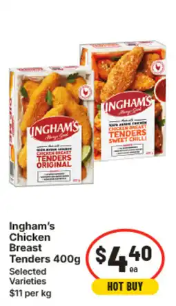 | Ingham's Chicken Breast Tenders 400 g | IGA | $4.50 | 09 July 2025 | 15 July 2025 | |||