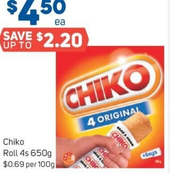 | Chiko Roll 4s 650 g | Foodland | $4.80 | 27 November 2024 | 03 December 2024 | |||