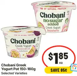 | Chobani Fit Protein Greek Yoghurt Pot Selected Varieties 160g | IGA | $1.80 | 02 July 2025 | 08 July 2025 | |||