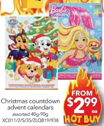 | Christmas countdown advent calendars | Cheap as Chips | $2.99 | 29 November 2023 | 05 December 2023 | |||