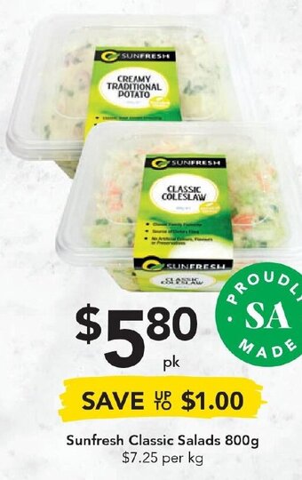 | Sunfresh Classic Salads 800g | Drakes | $6.20 | 11 October 2023 | 17 October 2023 | |||