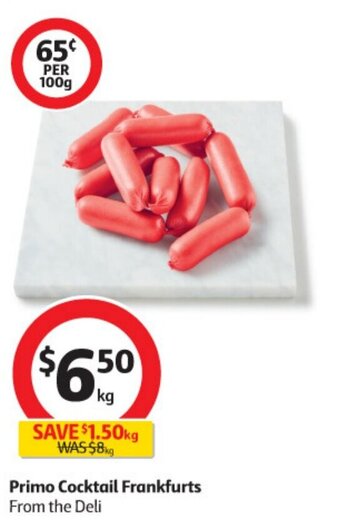 | Primo Cocktail Frankfurts | Coles | $8.00 | $6.50 | $1.50 Discount | 11 August 2021 | 17 August 2021 | |