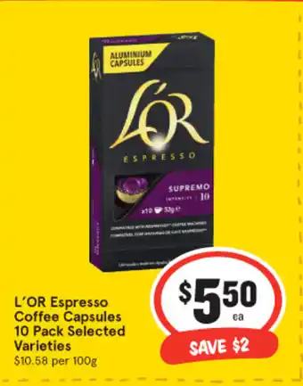 IGA L'OR Espresso Coffee Capsules 10 Pack offerL'OR Espresso Coffee Capsules 10 PackIGA$5.0010 September 202516 September 2025