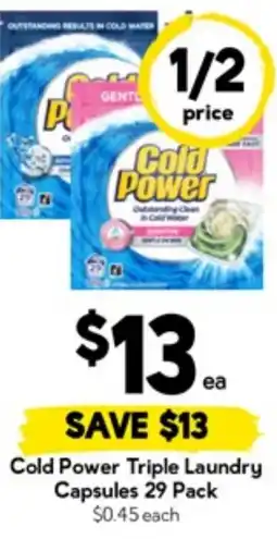 Coles Cold Power Laundry Capsules Sensitive offerCold Power Laundry Capsules SensitiveColes$26.00$13.00$13.00 Discount04 February 202610 February 2026