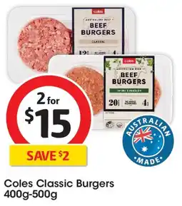 2Coles Coles classic burgers offerColes classic burgers 400-500 gColes$15.0025 February 202603 March 2026 View offer