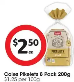 1Coles Coles Pikelets offerColes Pikelets 200 gColes$5.00$2.50$2.50 Discount22 April 202628 April 2026 View offer