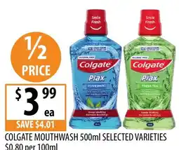 6IGA Colgate Plax Mouthwash Selected Varieties offerColgate Plax Mouthwash Selected Varieties 500mLIGA$7.00$6.00$1.00 Discount15 April 202621 April 2026 View offer