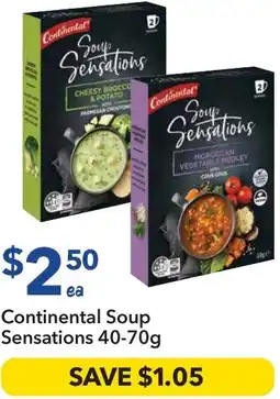 On this page, you can compare the latest prices for Continental across different retailers such as IGA. Whether you're looking for Continental cup a soup, Continental soup sensations or Continental cup a soup, you’ll immediately see where to get the best deal. The cheapest option is listed at the top, including retailer name, price and valid dates.