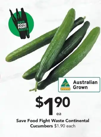 | Save Food Fight Waste Continental Cucumbers | Drakes | $1.90 | 29 September 2021 | 05 October 2021 | |||