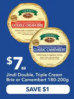 | Jindi Double or Triple Cream Brie or Camembert | Ritchies | $7.00 | 22 January 2025 | 28 January 2025 | |||