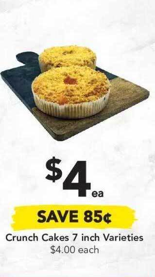 | Crunch cakes 7 inch varieties | Drakes | $4.00 | 22 November 2021 | 30 November 2021 | |||