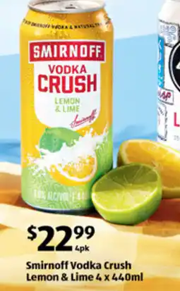 ALDI Striganov Vodka Crush 4 x 275ml offerStriganov Vodka Crush 4 x 275mlALDI$9.99$7.99Save 2,0027 April 202203 May 2022