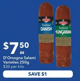 1Ritchies D'Orsogna Salami Varieties offerD'Orsogna Salami Varieties 250gRitchies$8.50$7.50SAVE $121 January 202627 January 2026 View offer