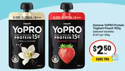 IGA Danone YoPRO Protein Yoghurt Pouch offerDanone YoPRO Protein Yoghurt Pouch 150 gIGA$250.70$250.00$0.70 Discount04 February 202610 February 2026