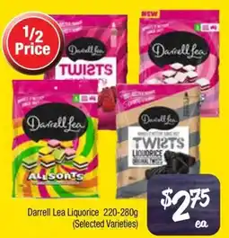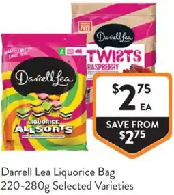 2Foodworks Darrell Lea Liquorice Bag offerDarrell Lea Liquorice Bag 220-280 gFoodworks$5.50$2.75$2.75 Discount15 April 202621 April 2026 View offer