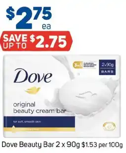 1Foodland Dove Beauty Bar offerDove Beauty Bar 2 x 90 gFoodland$5.50$2.75$2.75 Discount28 April 202605 May 2026 View offer