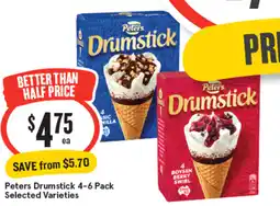5Woolworths Peters Drumstick Ice Cream-6 – Excludes Plant Based offerPeters Drumstick Ice Cream-6 – Excludes Plant Based 475-490ml Pk 4Woolworths$9.50$4.75$4.75 Discount07 January 202613 January 2026 View offer