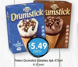 Coles Peters Drumstick Cones-6 Pack 475mL-490mL offerPeters Drumstick Cones-6 Pack 475mL-490mL 4 PackColes$9.50$4.75$4.75 Discount14 January 202620 January 2026