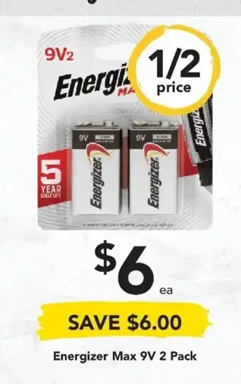 | Energizer Batteries Max Alkaline 9V 2 Pack | Drakes | $10.00 | 24 May 2023 | 30 May 2023 | |||