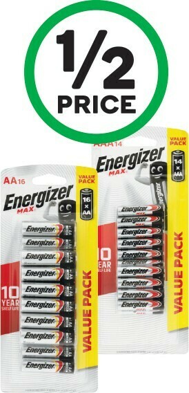 | Energizer MAX Alkaline Batteries AA or AAA Pk 16 | Woolworths | $27.50 | $13.75 | $13.75 Discount | 04 September 2024 | 10 September 2024 | |